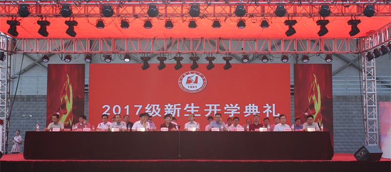 9月15日上午,2017级新生开学典礼暨“喜迎十九大 永远跟党走”庆国庆·迎新生文艺汇演隆重举行。学校领导、各单位主要负责人等出席,典礼由副校长杨立明主持。