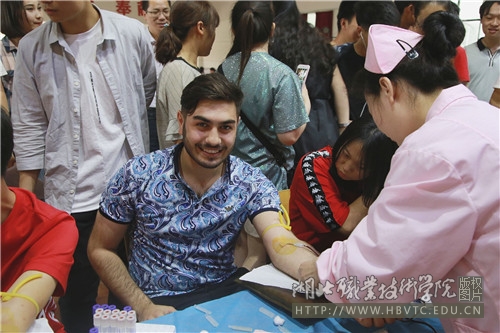 得知此次献血活动的消息,19岁的阿塞拜疆籍留学生毕目达(MURAD BILAOV)主动找到老师要求报名参加。在他就读的国际教育学院老师和同学们陪伴下,他完成了平生的第一次献血。问他是什么感受,他用刚刚学会的汉语说“很棒,我也可以帮助别人了”。这次献血活动不仅有效缓解了孝感市临床用血紧张局面,也充分体现了beat365正版唯一官网必一大学生的责任担当意识。