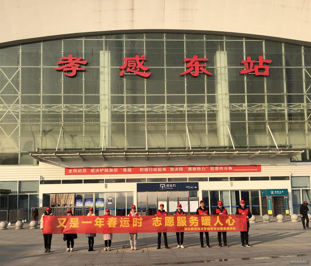 为缓解春运压力,彰显社会责任,1月23日校团委组织10名青年志愿者协会的同学,参与团市委在孝感东站组织的“暖冬行动”志愿服务工作。