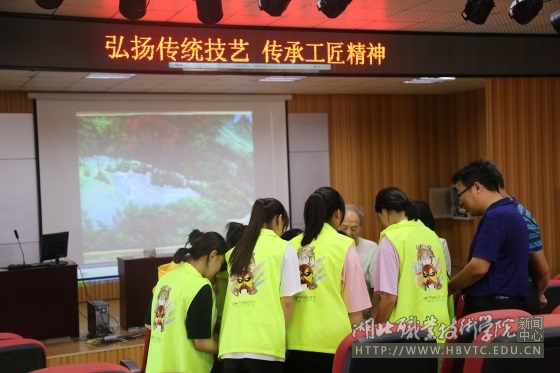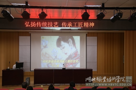 学校退休教师、知名丝画艺术家王士清老师应邀为师生作“弘扬传统文化、传承工匠精神”的专题报告。王老师从个人艰辛的求学生涯和艰难的创作经历谈起,用自己的切身体会告诉大家作为一名技艺传承人一定要秉承“精益求精、追求卓越”的工匠精神,要耐得住寂寞、苦练真本领,受得住各种困难、潜心搞创作;以视频方式展现出来的《锦绣中华纵览图》,深深震撼了在场的师生,激发了大家学习传统技艺、创作文艺作品的热情;互动环节,王老师用幽默的语言、生动的例子解答了同学们心中的困惑,勉励大家要坚定信念,持之以恒的追求自己的理想,用行动书写人生的画卷;报告会结束后,王老师还现场为孝文化艺术传承与教育基地孝义剧社的同学们传授起了丝彩画的制作工艺,耐心地指导同学们构图、描线……