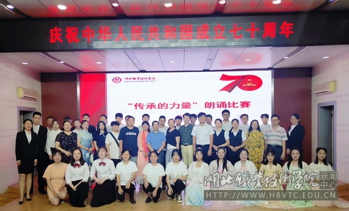 为了进一步加强文化素质教育,弘扬中华优秀传统文化,增强文化自信,喜迎中华人民共和国成立七十周年,“传承的力量”朗诵比赛5月初在全校展开,比赛分初赛、复赛、决赛三个阶段。在校生以个人或团队参赛,形式不拘一格,大力创新,参赛个人或团队积极运用信息化技术,配以精美的PPT、激越音乐旋律,有的团队还配以舞蹈、吟唱、场景展现等艺术样式,体现了很高的朗诵艺术水准,给观众带来了一场场以爱国主义为主题的艺术盛宴。公共课部祝一勇老师在决赛现场进行了点评,充分肯定了同学们精益求精的参赛态度、追求卓越的艺术尝试、奋发向上的艺术激情,为学校校园文化增添了一道道向上向善、忠诚感恩的艺术风景。