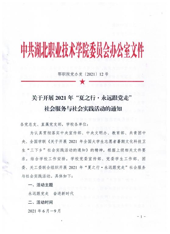 关于开展2021年“夏之行•永远跟党走” 社会服务与社会实践活动的通知