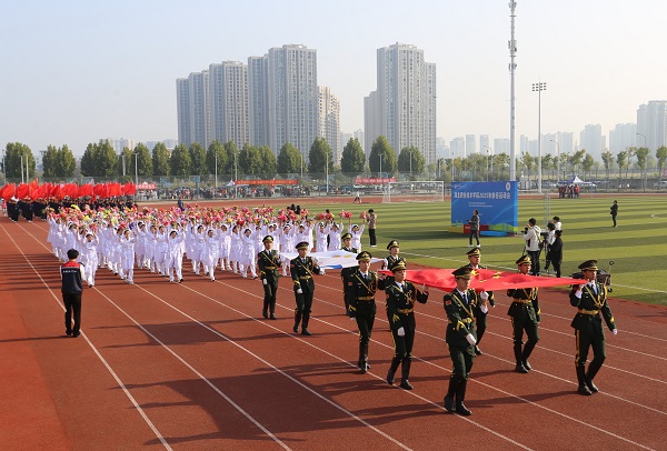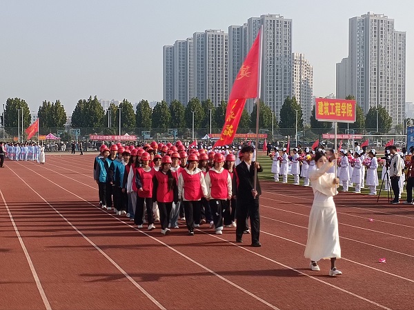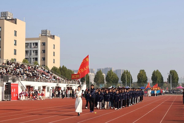 伴随着激昂的《运动员进行曲》,在国旗护卫队的引领下,会徽队、鲜花队、旗林队、各学院代表队、教职工代表队、裁判员代表队迈着整齐矫健的步伐依次入场。文体表演环节中,歌曲《我的天空》唱出青春理想,啦啦操《活力飞扬,逐梦赛场》跳出运动激情,赢得全场阵阵喝彩。