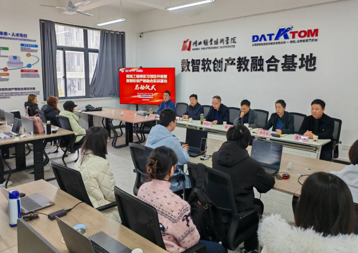 胡昌杰致辞。他强调,当前我们正处在新一轮科技革命和产业变革加速演进的时代,数字化、智能化、绿色化已成为产业转型升级的核心驱动力。现场工程师班实习项目开班暨数智软创产教融合实训基地启动,是学校深化产教融合,主动对接产业需求、扎实推进育人模式创新的具体体现。衷心希望与合作企业继续携手,不断完善协同育人机制,探索更多可复制、可推广的产教融合新模式,共同将基地建设成培养新时代现场工程师的“练兵场”,打造“双师型”教师队伍的“孵化器”,推动产学研用协同创新的“连接器”,服务区域产业发展的“辐射源”。