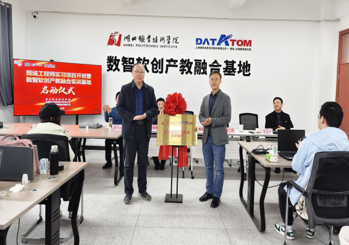 在全场嘉宾和师生的共同见证下,胡昌杰与韩欣共同为“数智软创产教融合实训基地”揭牌,这将开启校企深度融合、共育数智英才的新篇章。
