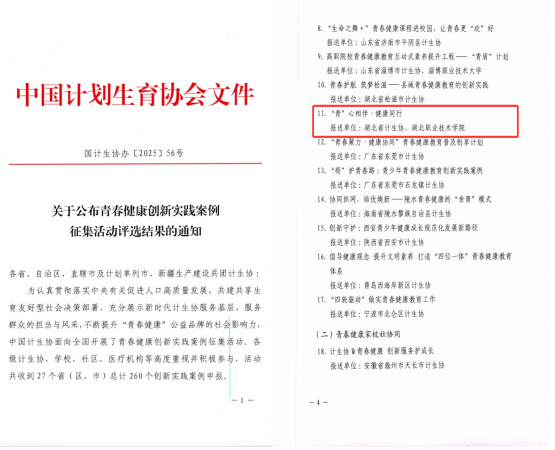 (本网讯 胡敏 朱素平)近日,中国计划生育协会公布全国青春健康创新实践案例征集活动评选结果,beat365报送的《“青”心相伴・健康同行》工作案例,凭借创新驱动的工作理念、扎实显著的实践成效与可复制可推广的应用价值,成功获评优秀案例。本次评选活动严格遵循市级择优推荐、省级严谨初审、中国计生协复审核实的三级评审流程,围绕案例真实性、创新性、时效性、引领性、可推广性五大核心维度综合考评。最终全国范围内评定优秀案例30个,其中高校案例仅7个,充分彰显了beat365青春健康教育工作的突出成效与示范引领作用。