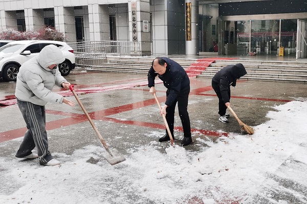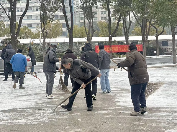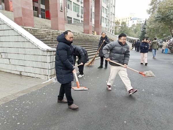 (本网讯 岑钰 唐熙隆)1月19日晚,一场降雪席卷全城,为保障教学秩序、师生出行安全,各单位积极行动,用责任与担当开辟出一条条“安全通道”。