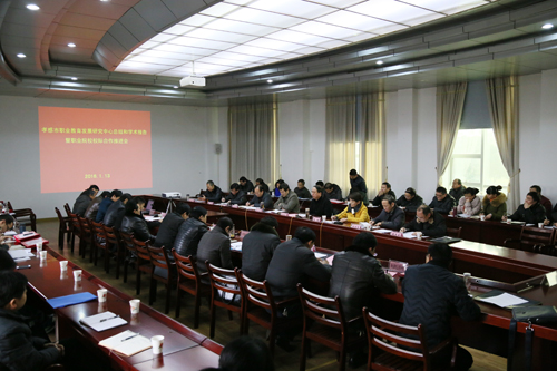 为贯彻中央关于加快发展现代职业教育的战略部署,构建孝感市现代职业教育体系,全面总结孝感市职业教育发展研究中心一年来的工作,加强各院校间的合作与交流,1月13日,孝感市职业教育发展研究中心学术年会暨校际合作交流推进会在beat365举行。孝感市教育局局长季云堂、工会主席朱西明、教科院院长万新才、职教科科长邹德平,学校领导蔡诗红、朱虹、张勇、闵建杰等出席了会议,孝感市13所中职学校的代表、beat365各二级教学院负责人等60多人参加了会议。会议由校长朱虹主持。