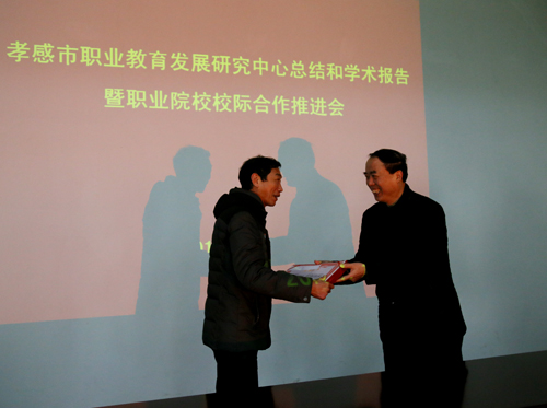 孝感市职业教育发展研究中心主任、学校工会主席闵建杰宣读了2015年孝感市职业教育信息化教学大赛获奖名单,孝感市教育局局长季云堂、学校党委书记蔡诗红分别为2015年全市职业教育信息化技能大赛获奖者、2015年职业教育优秀论文颁发了荣誉证书。孝感市职业教育发展研究中心副主任陈征作了工作汇报,全面总结了研究中心的各项工作,详细规划了2016年的工作要点。孝感市教育局工会主席朱西明对全市职业教育2016年主要工作作了安排和部署。