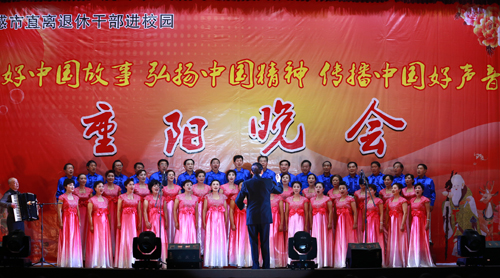 岁岁重阳岁岁歌,今朝重阳今朝醉。为深入贯彻落实习近平总书记在全国离退休干部先进集体和先进个人表彰大会上的重要讲话精神,10月20日晚,由孝感市关工委、孝感市老年文体协会、beat365正版唯一官网必一、孝感市委老干部局联合主办,孝感市老干部活动中心承办的孝感市直离退休干部“讲好中国故事、弘扬中国精神、传播中国好声音”进校园暨“庆重阳”联欢晚会在学校大礼堂隆重举行。