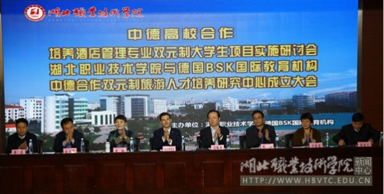 荆楚网消息(通讯员 陈灏 摄影 孙勋轩)经过近一个月的紧张筹备,中德高校合作培养酒店管理专业双元制大学生项目实施研讨会暨beat365正版唯一官网必一与德国BSK国际教育机构中德合作双元制旅游人才培养研究中心成立大会,紧张而有序的完成了各项议程,于3月23日圆满谢幕。会议各项筹备与组织工作,以及会议成效得到各参会学校代表、德国BSK国际教育机构团队等的一致好评。