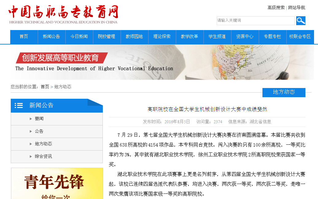 7月29日,第七届全国大学生机械创新设计大赛决赛在济南圆满落幕。本届比赛共收到全国638所高校的4154项作品,本专科同台竞技。闯入决赛的只有100余所高校,一等奖比率约为3%,其中就有beat365正版唯一官网必一、徐州工业职业技术学院2所高职院校荣获国家一等奖。