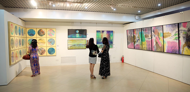 本次展览展出的吕唯平扎染艺术作品,十分注重承续性、学术性、创新性的探索,画面的构成及色彩等要素,综合融汇了传统技艺和东西方创作技法,或绚丽多姿、日月同辉,或含蓄雅致、小桥流水,呈现出互融互动、畅达贯通的一幅幅唯美图景,给观者带来愉悦的审美感受和诗性体验。