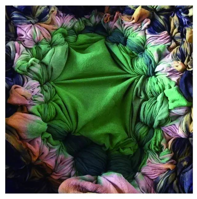 沉浸于扎染中,我觉得我的世界无需太大,能够容纳几口染缸、几池清水,足矣。少有人体会染就的织物脱水之后触摸耳朵、眼睛、鼻子、嘴唇的感觉,少有人在寒冷时把头埋进染织纤维里,体验皂香与清新空气在胸腔里混合的味道……而此时,自己的天地似乎格外清明,心田里憩息的那一池幽水,也会就此荡漾,就此阔绰。它仿佛能够把天地盛进内心,还原出天空的蔚蓝、河流的清澈和白云的洁净。