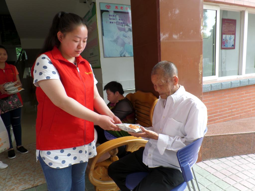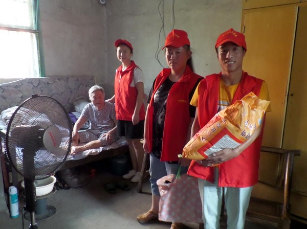李燕带领孝道志愿服务队成员给孤寡老人送生活物资