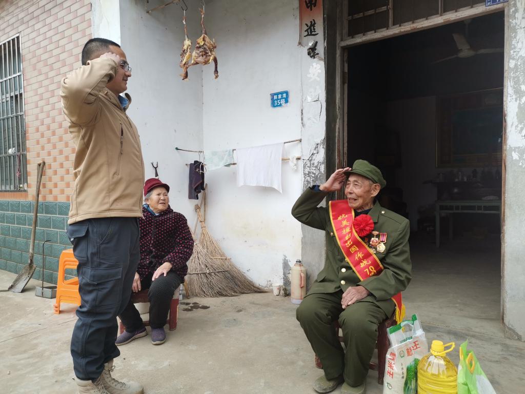 连舒畅慰问退伍老兵
