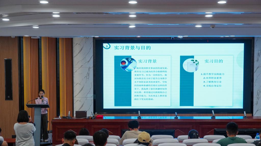 汉语言文学专业的张学娜,裴盼,马春燕三位同学作为支教代表,分享了他们在甘谷,新疆支教期间的点点滴滴。他们提到,支教不仅是一次教学实践,更是一次心灵的洗礼。并且强调,在实习期间要提前做好心理建设,以勇敢自信的态度面对挑战,多与指导老师交流,不断提升自己的教学能力。
