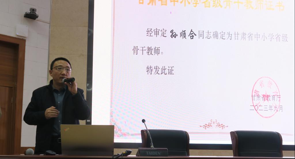 2024年11月29日,甘肃省高级教师、天水市学科带头人、甘肃省读者杂志作文特邀评委孙顺合老师莅临我院开展学术交流活动,讲座题目为《做快乐幸福的语文教师》。讲座在2号报告厅举办,由pg电子官方网站副院长陈芳芳主持,2023级汉语言文学专业本科生参加。本次活动是校庆65周年暨学术月系列活动。