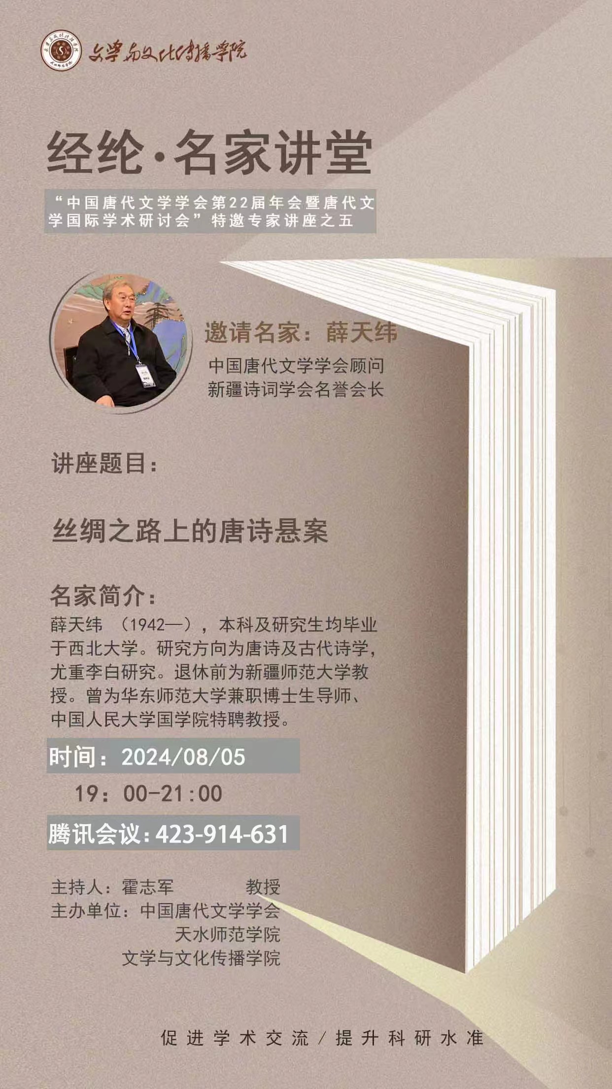 讲座预告:“中国唐代文学学会第22届年会暨唐代文学国际学术研讨会”特邀专家系列讲座