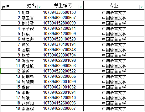 文传学院硕士研究生入学考试一志愿考生复试名单