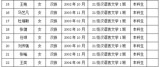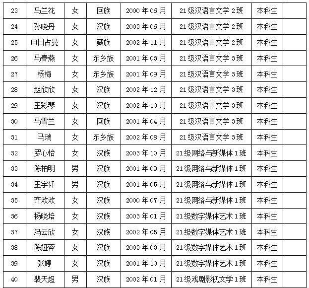 根据学校文件要求,经学生个人申请、各班民主推荐,学院党政联席会议审定,拟推荐2022级学科教学(语文)张能能、孔佳萍等13名研究生,21级汉语言文学1班张慧芳、王艳等34名本科生为学院2025年甘肃省选调生报名人选,现予以公示(人选名单详见附件)。