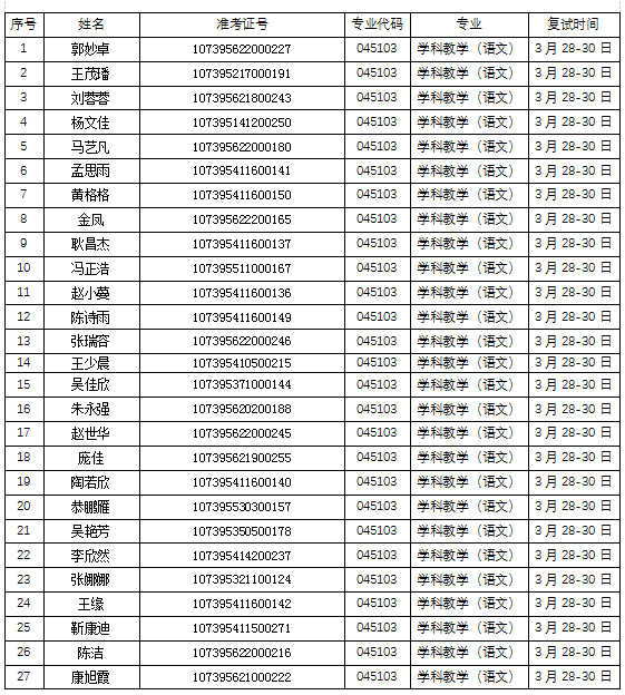 天水师范学院pg电子官方网站2025年硕士研究生复试考生公示名单