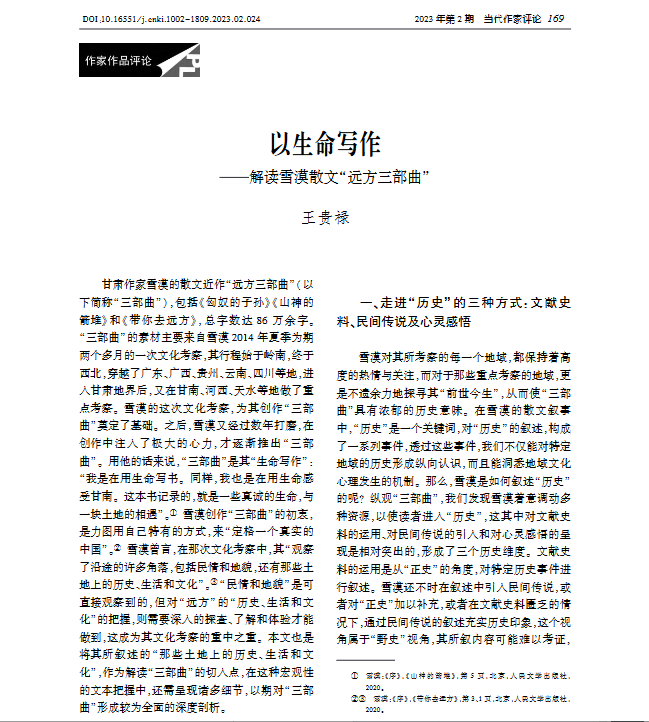 【成果推介】王贵禄:以生命写作——解读雪漠散文“远方三部曲”以生命写作——解读雪漠散文“远方三部曲”