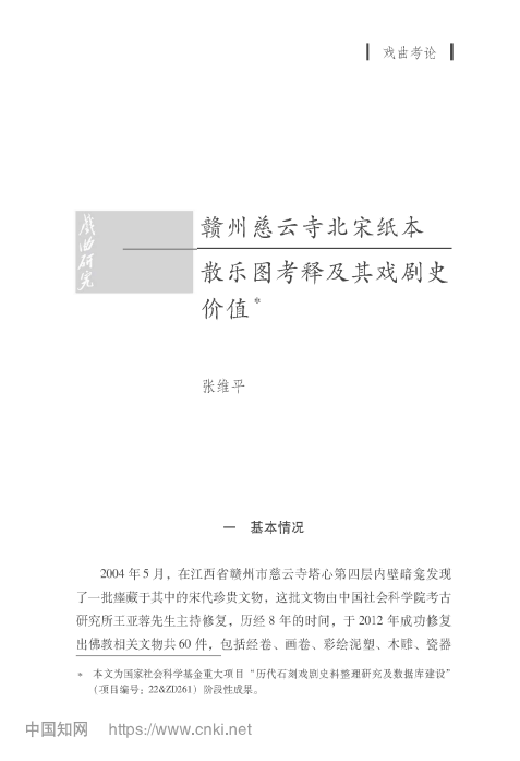 编者按:2025年《戏曲研究》杂志刊发了我校pg电子官方网站讲师张维平的文章《赣州慈云寺北宋纸本散乐图考释及其戏剧史价值》。文章已收录于知网。全文如下: