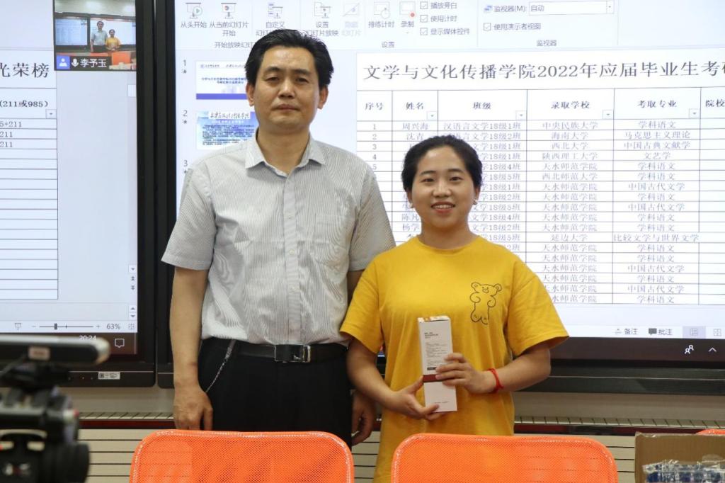 最后,由两位院长为考研被录取的研究生颁发奖励证书。