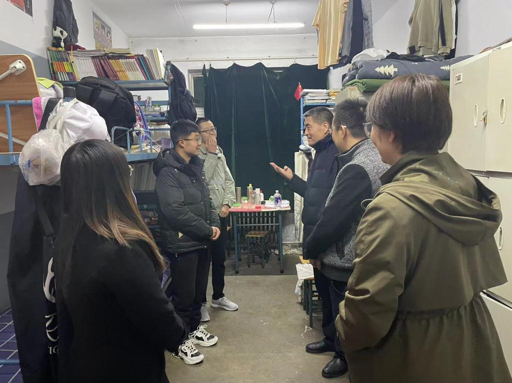 为加强学生宿舍的管理,查看新学期学生返校情况,排除宿舍安全隐患,2023年2月26日晚19:00,学院副书记汪鸿宾、副院长田峰、辅导员、班主任以及部分学生干部走进学生宿舍进行安全巡查。本次检查主要内容包括日常规范、文化风貌、卫生环境、宿舍违纪情况等。学院领导和辅导员们在检查宿舍的同时,还关注同学们的学习和生活,仔细提醒同学们在宿舍要安全用电,注意自己的人身财产安全,出入寝室要及时关门,谨防电信诈骗等,提高每位同学的安全意识。