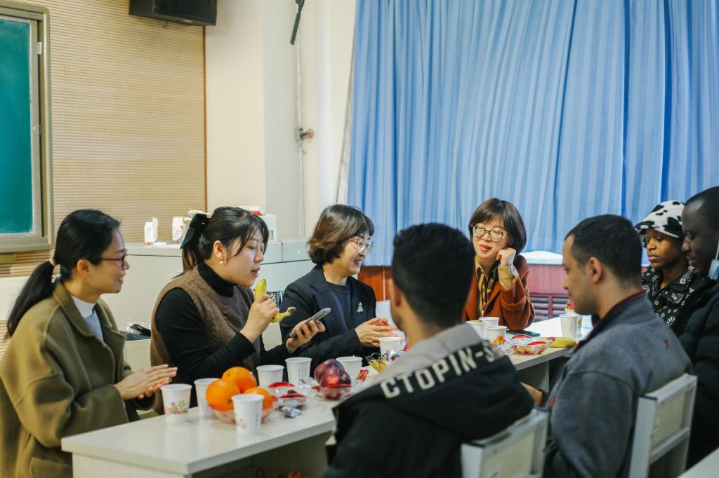 座谈会上,师生展开了别开生面的交流方式,留学生用自己的母语歌曲表达了对各位老师的感谢,各位老师也积极参与,为留学生展示了中国民歌和流行歌曲的魅力。座谈会在一片欢声笑语中圆满结束,此次活动增进留学生与导师、留学生与学院、学校之间的感情, 深化了“国际化”办学理念 。