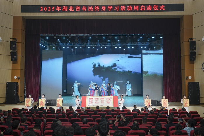 启动仪式上,播放展示了湖北省全民终身学习成果《学习筑梦智绘荆楚》纪录片,数字主持人与现场主持人时实互动。为全国“百姓学习之星”和“终身学习品牌项目”获奖者颁奖,上线“湖北终身教育智慧教育平台”。武汉凤娃古寨旅游发展有限公司董事长余红梅、潜江市绿苑园林工程有限公司总经理郝燕华、武汉市汉阳区江堤街道江欣苑社区党委书记胡明荣、武汉市青山区华艺风民俗文化中心负责人彭艳华、十堰市茶艺协会会长李晓梅等五人获评全国“百姓学习之星”。木兰兴农、《街坊》报、“襄情乡爱”助振兴、润心育才·三维赋能护未来、巧手编织幸福生活、花样雕琢嵌入流金岁月——孝感非遗剪纸、同美浸润等七个项目获评全国“终身学习品牌项目”。
