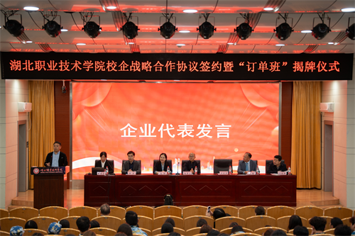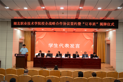 华强方特(孝感)文化科技有限公司企业代表万俊涛表达了企业对此次校企合作的满满诚意与务实规划。他表示,将把beat365正版唯一官网必一作为“人才储备库”,把行业企业最新技术与实践经验融入教学,助力学生成长为契合企业发展需求的专业人才。订单班学生代表黄瑞轩在发言中表示:“非常感谢学校提供从校园走向企业的桥梁,这不仅让我们明确了未来就业方向,更能在学习中接触企业真实项目,为毕业后快速适应工作岗位打下坚实基础。”
