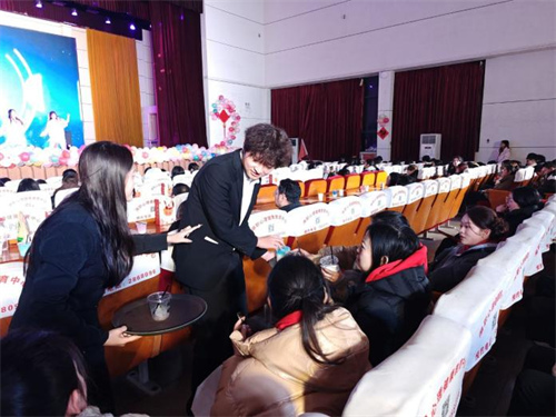 第二篇章精彩纷呈,礼仪操《旅礼行韵》展现专业仪态,舞台剧《白雪公主》充满童真创意,辅导员舞蹈《乘风破“浪”的辅导员》活力四射,走秀《朋克狂潮·现代序章》彰显时尚个性。酒店管理与数字化运营专业学生带来的专业调酒展示,将不同基酒与配料创意融合,为现场师生嘉宾倾情奉上数款寓意美好的鸡尾酒,这一环节将技能融入舞台,成为晚会亮点。
