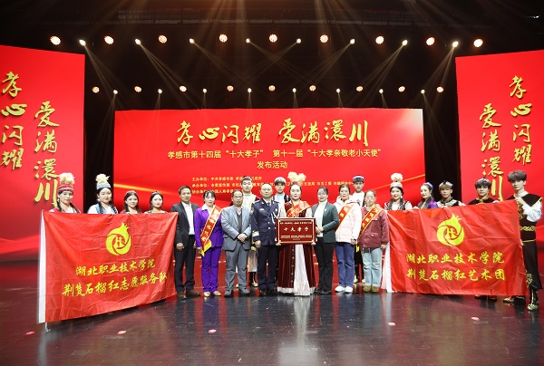 市文化中心孝感大剧院座无虚席,真情满满。《美丽中国》是“孝心闪耀・爱满澴川”孝感市第十四届“十大孝子”、第十一届“十大孝亲敬老小天使”发布活动的压轴文艺节目,荆楚石榴红艺术团12位学子身着民族特色服饰激情起舞,将“孝亲敬老”的主题与“孝铸共同体 中华一家亲”的理念完美融为一体,赢得全场经久不息的掌声。观众在活动结束后,与荆楚石榴红艺术团的同学交流,称赞《美丽中国》让大家眼前一亮,演出有“大学味”“民族风”“中华情”。