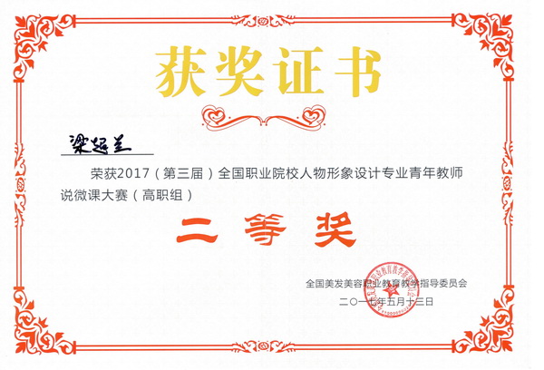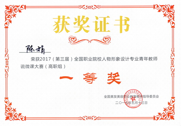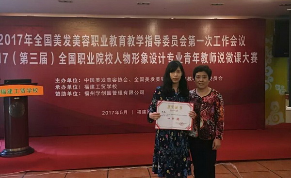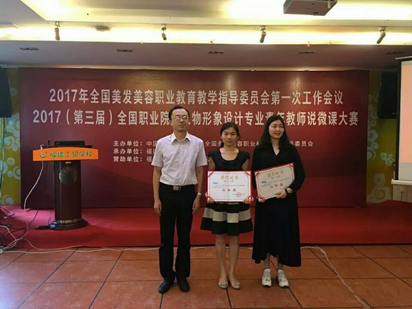 5月12日,由中国美发美容协会、全国美发美容职业教育教学指导委员会举的2017(第三届)全国职业院校人物形象设计专业青年教师说微课大赛在福建福州举行,来自全国17所院校27名青年教师参加了本次说微课大赛。beat365美容学院陈娟老师在本次比赛中凭借扎实的教学基本功和全新的课程设计理念取得比赛第一名,荣获大赛一等奖,并获得“金教鞭奖”;梁超兰老师获二等奖。