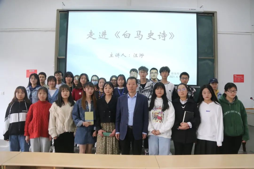 4月17日下午,瀚海潮文学社在2号教学楼阶梯教室121举办了“走进《白马史诗》讲座”活动。此次活动有瀚海潮全体社员和在校文学爱好者参加,天水市作协副主席汪渺老师应邀到场,在走进《白马史诗》的文学讲座当中,为大家解答了关于《白马史诗》和平时文学创作的疑惑。