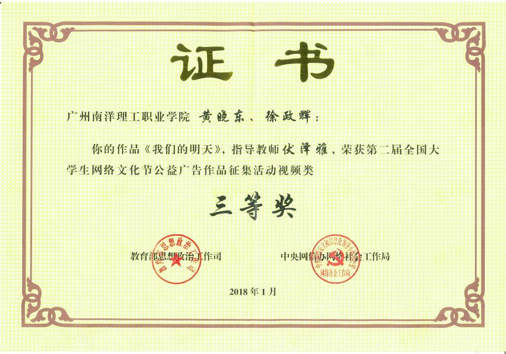 伏泽雅,男,1994年出生,现任广东工程职业技术学院人工智能学院团委书记。内蒙古师范大学国交中心外聘教师、蒙古国电影艺术学院硕士研究生导师、蒙古国可汗国际学院外聘顾问。被广东省教育厅、甘肃省教育厅授予优秀指导教师荣誉称号、指导学生作品荣获教育部三等奖、教育厅一二等奖自2016年至今,先后指导学生团队参赛各类国赛、省赛,荣获国家级一等奖一项、国家级三等奖一项、国家级优秀作品奖奖一项,广东省一等奖两项、二等奖五项、三等奖一项、优秀奖两项。指导学生在互联网+创新创业大赛广东赛区比赛中荣获省级优胜奖。先后被甘肃省教育厅、广东省教育厅授予“优秀指导教师”荣誉称号。