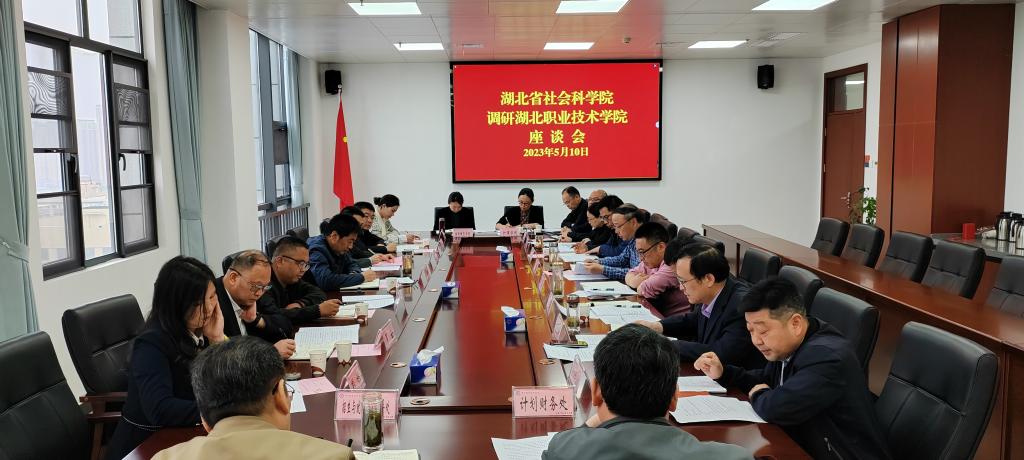 (本网讯 龙涛)5月10日,湖北省社会科学院社会学所所长李海新一行七人来校就“大力发展现代职业教育,助力地方经济高质量发展”开展主题调研。调研座谈会由学校副校长胡昌杰主持。